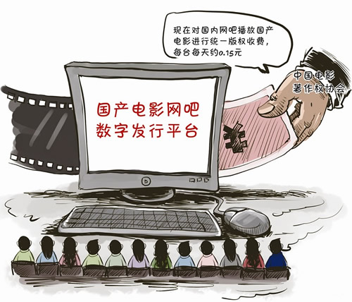 影著协成立后宣布将受权代理所有国产电影版权,并拟从今年起向国内网吧收取国产电影版权费用,具体标准为:由各地区平均每小时的上网费用乘以7.5%,即为每台电脑每天应缴的金额。以武汉为例,网吧平均上网费为2元/小时,得出的收费标准为每台每天0.15元。