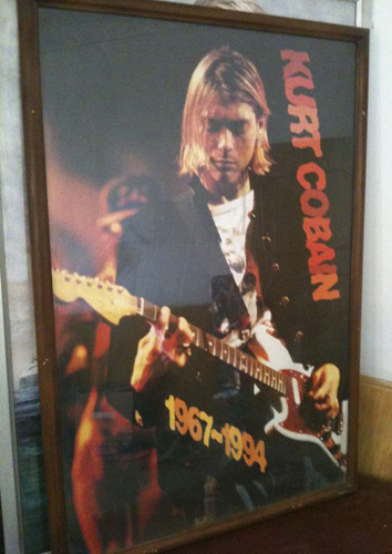 涅盘乐队(Nirvana)的几张唱片我都拥有原版,当然多是打口唱片。左撇子吉他好手Kurt Cobain带给我的不仅仅是好的音乐,他略点忧伤的眼神也震撼着我。这张海报是我从托广州朋友邮寄而来,有人曾经出1000元想要购买被我婉拒。