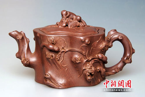 宜兴紫砂与“世博”渊源颇深,历史上曾多次参加世界性博览会并获大奖。记者现场看到,在历届国际性展览中获奖的6件珍品在展厅内光彩耀目,其中在1910年“第一次南洋劝业会”上获金奖的范大生“大柿子壶”、1915年美国巴拿马国际赛会获金奖的程寿珍“掇球壶”、1926年美国费城艺术博览会获金质奖的冯桂林“松鼠葡萄壶”等珍品引来众多文化艺术界人士争相一睹芳容。