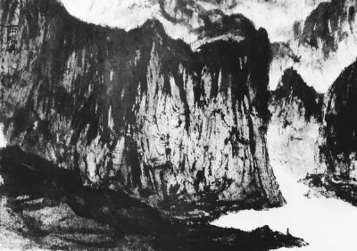 《西陵峡》是傅抱石这个时期的代表性山水作品之一,也许是在“思想变了,笔墨就不能不变”的创新思想的激发下,傅抱石借鉴历代山水皴法,结合对地质学的研究,创造并丰富了“抱石皴”技法。