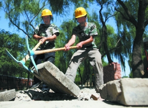 “呯”、“呯”……铁镐和铁锤下,一块块水泥方砖被砸碎,撬起。它们在颐和园环湖路呆了近40年后,因为过于“现代”,将不得不离开这座“古典”的皇家园林。