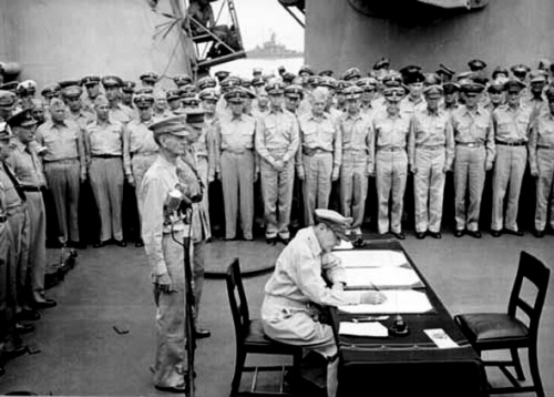 1945年9月2日,温莱特中将在密苏里号战舰上见证了日本的投降,这一时刻对他来说真是百感交集,既惭愧又自豪,当然更非常激动。“我已经为了这一天等了三年多,现在再高兴不过了。”温莱特非常感激美国人民对他投降这件事的理解和同情,还有麦克阿瑟将军给了他这次见证日军投降的机会。仪式上,他和英军中将帕西瓦尔就站在麦克阿瑟的身后。麦克阿瑟签字用了五支自来水笔,他把其中两支留给了他们作为纪念。他甚至跟温莱特开玩笑说,瘦皮猴,如果你愿意,欢迎回来继续带你的那支队伍。