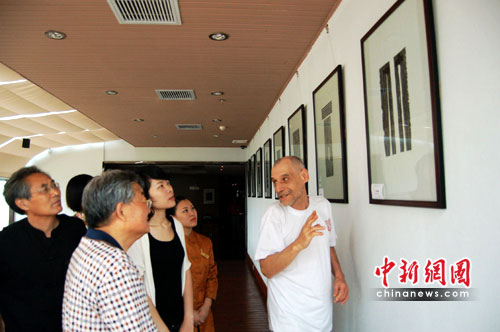 中新网武汉6月25日电 (记者 张芹) 25日,荷兰著名艺术家卡塞尔•格里茨携28幅版画作品亮相武汉。武汉知名书画家齐聚楚风堂艺术中心,出席画展开幕式。