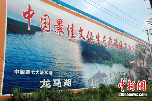 昨天上午,记者经连徐高速新沂南出口时,看到一块新上的巨型广告牌上,在“中国最佳文化生态旅游城市新沂——欢迎您”宣传语傍边还有中国第七大淡水湖龙马湖、第一江山马陵山以及古镇窑湾的图片,广告画面的右下方落款是中共新沂市委和新沂市人民政府。