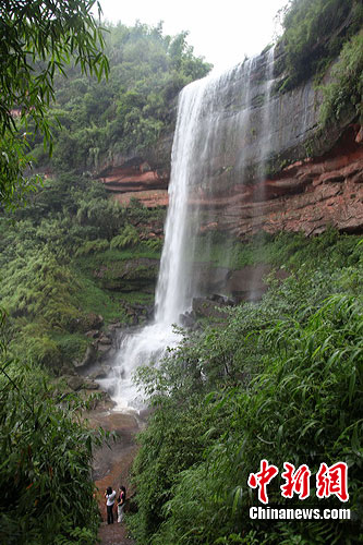 中新网宜宾7月27日电(刘龙泉)连日的降雨,使四川长宁蜀南竹海景区内的小水缭河的河水陡涨,并形成了壮观的瀑布群。