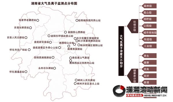 大气负离子浓度是空气清洁度的重要评价指标。从6月起,湖南省气象台正式每天对外公布大气负离子浓度,市民可随时登录湖南省气象网了解当天湖南大气负离子监测数据,了解所处的环境等级。