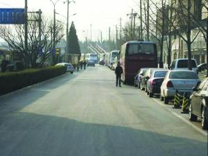 现在的停车位与机动车道。