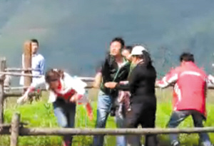 云南丽江一女游客骑马未给钱遭马夫殴打(图)