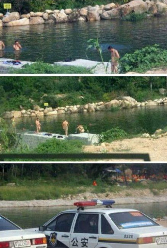 河南平顶山回应警察在景区内下河洗澡:正在调查(图)