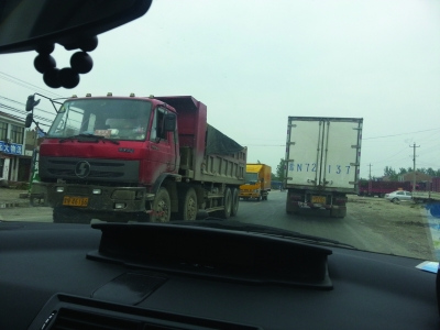 除了道路狭窄外,最让人感到恐惧的是路上的车辆,密集车流中,最多的就是各种大货车。进入萧县段到驶入砀山县城,一路上记者粗略估计,大货车占据道路行驶车辆一半以上,沿途经过多个镇区,两侧也停满了各种货车,沿街到处是大货车配件店、修理门市、货场。据毛堂村多位村民反映,310国道屡次发生大的车祸,大部分事故中都是大货车。一名王姓村民表示,“最近一个多星期里,砀山李庄水果市场到四中队只有几公里的路段,已经发生了三起有大货车参与的交通事故,好几个人死伤。“村民反映,这些大货车除了砀山、萧县本地车辆外,还有来自徐州、河南方向车辆,大部分大货车都不会走高速,走国道主要是为了节省过路费。