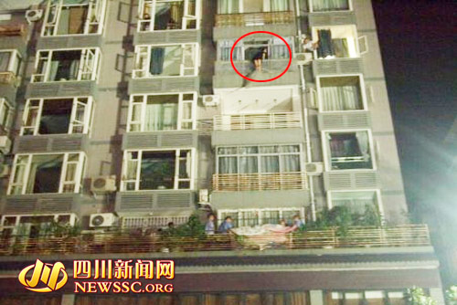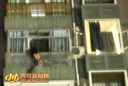 四川一女子悬空窗外欲跳楼 警方与城管联手施救(图)
