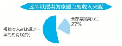 约41%的受访者表示曾换过2个至4个摆卖点。在一个地点基本不挪窝的占到24%。表示曾换过8个以上摆卖点的也高达19%。从挪窝的频度上看,一年内基本不换点,相对固定的比例和三天两头“打游击”的比例都趋于24%,表示从未换过点的也有约21%。