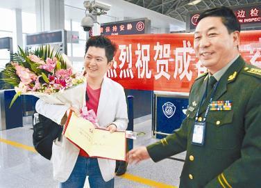马来西亚游客刘佑成成为成都空港口岸今年第200万名出入境旅客。省公安边防总队供图
