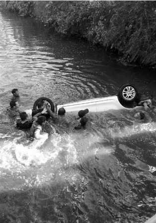 12条农家汉子下河抬车 用拳头砸车窗救人(图)