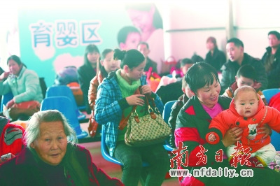 在“老弱病残幼”候车室里,带着妻儿的张先生准备乘车前往湖北麻城。张先生告诉记者,昨天他和妻儿刚到东莞东准备排队入站时,很快就有热心的志愿者上前来,一边帮忙提东西,一边引导他们到环境更为舒适的“老弱病残幼”候车室就坐,令他觉得十分感动。据了解,为了更好地服务母婴,今年,东莞东火车站在“老弱病残幼”候车室里设置了哺育室,方便母亲给初生不久的孩子哺乳。