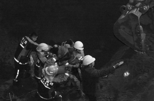 现场指挥员综合分析现场情况果断决定挖井救人,很快四台大型挖掘机先后赶到现场,在指挥员调度下,围绕井口开始挖掘。