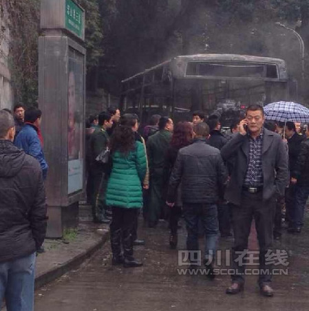 四川泸州208路公交车疑似自燃 伤亡情况不明(图)