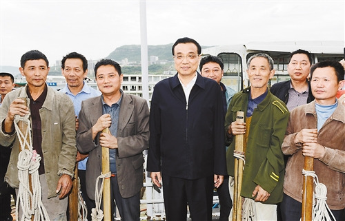 在万州港码头,总理与“棒棒”们亲切交谈。他接过“棒棒”何绍强手中的扁担,仔细打量后说:“已经磨得很光滑了,看来干这行有些年头了。”得知老何60岁了,李克强关切地抚着老何的腰,问他腰背怎么样、身子骨能不能干重活儿,叮嘱他千万要保护自个儿的身体。