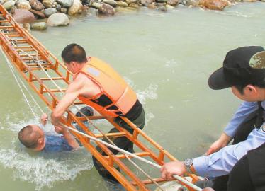 紧急营救水流湍急过河困难9米云梯搭桥救人