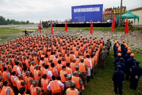 安庆市防汛抢险应急救援实兵演练在望江举行(图)
