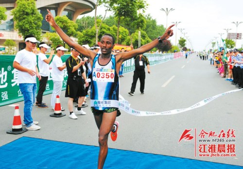 “半程点”往往是马拉松比赛的一个关键点,参赛选手的体力往往在这时将达到身体极限。当天比赛进入半程后,之前领先的四名黑人选手中的两名选手渐渐放缓了脚步,张闻和梁晶借此奋力追赶。最终,来自肯尼亚的选手威廉和贝斯威尔率先冲过终点,以2小时29分59秒和2小时30分30秒的成绩分获冠亚军,昆明选手张闻以2小时31分11秒获得季军,合肥本土选手梁晶则以2小时42分的成绩跻身前四。