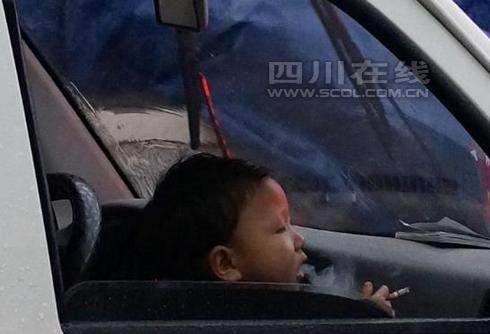 四川一小孩在车上抽烟 网友称其架势娴熟(图)