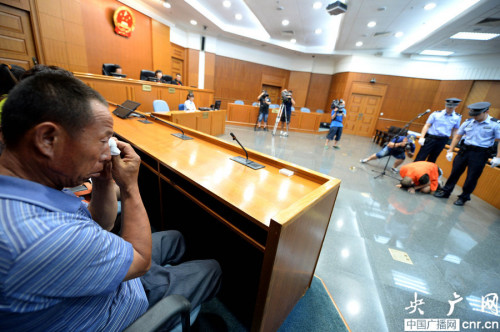 当法官宣判尤洪湧死刑缓期执行时,这个身高将近1.8米的小伙子连说了十几个“对不起”,之后,他转身45度,向郑某的父亲两次下跪,并表示道歉和感谢。