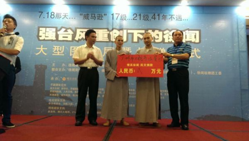 27日上午,“威马逊超强台风重创下的徐闻”大型图片展暨捐赠仪式在广东迎宾馆举行。本次展览由徐闻县人民政府、广州市慈善会、广州市徐闻商会主办。本次捐赠共筹得善款近400万元。