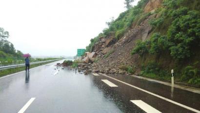 连日降雨 塌方致高速路面被阻