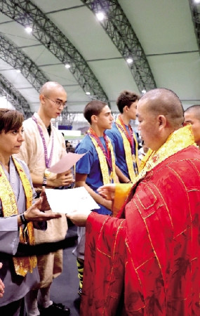 释永信向参赛者说,凡是获得金牌的选手,任何时候到少林寺都能免费体验少林文化,体验少林僧众的修行生活。这对以少林寺为心中“功夫圣地”的洋弟子们,无异于美梦成真。