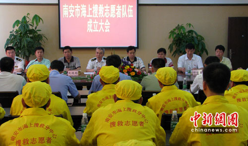 海上搜救工作是一项社会公益事业,建立海上搜救志愿者队伍是许多国家广为采用的一种搜救组织形式。南安市海上搜救分中心经过严格挑选,招募了43名符合条件的海上搜救志愿者和5艘志愿船舶,成立了福建省首支海上搜救志愿者队伍。