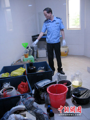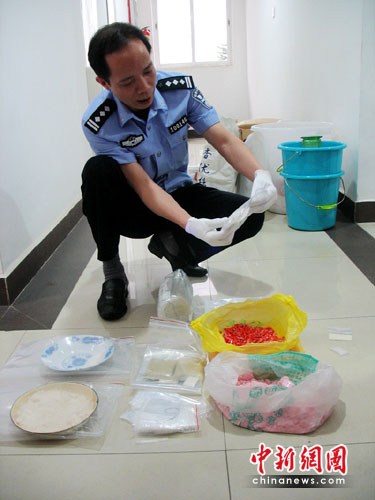 警方当即突审3人,并根据初审情况,直捣设在居民小区的3处制毒窝点,缴获毒品100多克、半成品200多克、制毒原材料200千克和制毒工具两套,同时还抓获了同案的一名女犯罪嫌疑人。