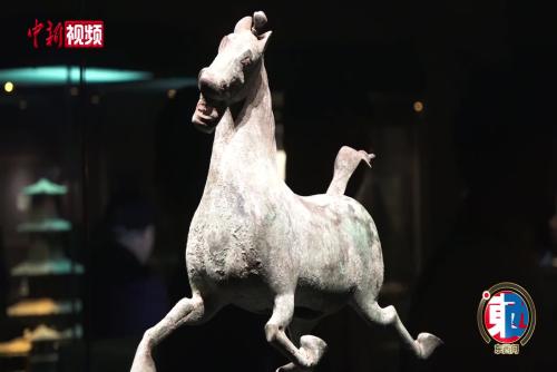 参观者欣赏甘肃省博物馆展出的“铜奔马”真品。中新社记者 杨艳敏 摄