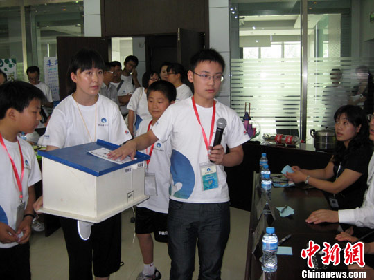 中新网廊坊7月7日电(记者 宋敏涛)今天上午,在河北廊坊新奥煤基低碳能源技术中心,来自四川省北川县的小学生付弘昊正在讲解自己的小发明《板房学校厕所雨水收集冲洗系统》,得到了在场科研人员的一致好评。