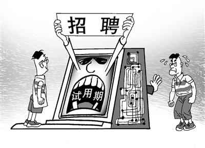 比如毕业于北京某计算机学校的小张,因其对象原因,来到辽宁抚顺安家落户。一天,她从当地的一家报纸上看到该计算机学校的招聘广告,心里甭提多高兴了。于是,她满心欢喜地前来应聘,当时学校负责人对小张的条件相当满意,而且听她的讲课,学员们反映效果也非常好。可万万没有想到五天试用期一到,她也难逃厄运。该计算机学校的负责人仍以“不适合这里的工作”为由,将其辞退。当然也是分文未得。在接受记者采访时,小张苦笑着对记者说:“我白白尽了五天的‘义务’”。
