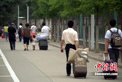中新网郑州6月9日电(胡影)随着6月8日下午5时一声铃响,2011年高考落下帷幕。9日上午,在郑州,参加完毕业典礼的莘莘学子们收拾行囊,准备离校回家。