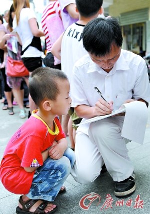 昨天下午2时,距离下午报名开始还有半小时,已有20多位家长在赤岗小学教学楼二楼指定的“非地段生报名咨询处”排队,相比起来,“地段生报名处”反而没几个人。负责维护秩序的保安告诉记者:“早上非地段生报名处的人把实验室都坐满了。”