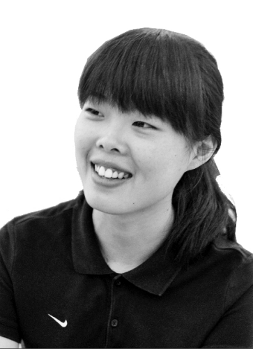 梳着马尾辫,一身运动装;单眼皮,爱笑,90后女孩张旭月清爽、阳光。