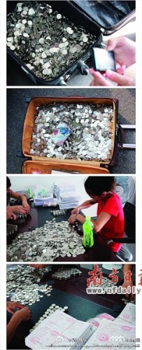 大学生拎2万元硬币交学费 称为引起韩寒注意(图)