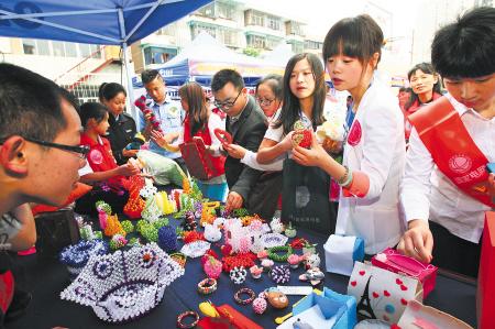 在爱心义卖区,众多爱心人士现场“购买”了手工作品和美术作品,所得爱心款将捐赠给有苦难的人。石祯专 邹 麟 摄影报道