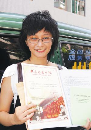 喜上眉梢!2008年7月14日,海南考生王巧收到当年第一份录取通知书。 张杰 摄