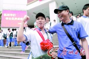 昨日考完后,考生们在培正中学的喷水池边互相道喜。有调皮的学生突然合力抬起一男生,把他扔到喷水池的泉口上。围观的学生哈哈大笑,湿透的男生也乐不可支。“大家早就想玩一次了,高考结束,放松一下。”