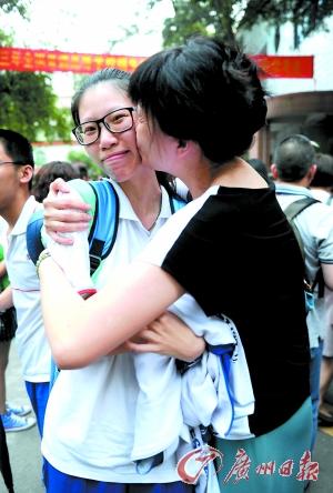 “执文笃学战六月,新手拈来定夺魁。”昨日7时,红色横幅在执信中学门口拉起,五六十名学生站在横幅后面,为走进考场的同伴大声说着“加油”,不时送上击掌和拥抱。这几十名学生是以因为出国不参加高考的应届高三学生为主。