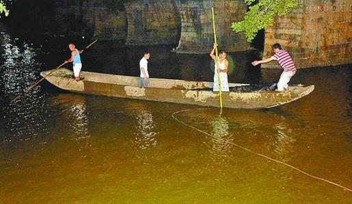 当晚7点多,记者在现场看到,延寿桥周边没有路灯,荔城消防官兵就地发电,给营救提供照明。因为迟迟找不到孩子,溪白村村干部和部分村民自发带来了绳子、木棍、小木船等,继续在溪里搜救(如图)。孩子的家人也在现场,强忍着悲痛忙着搜救。(湄洲日报 吴伟锋 文/图)