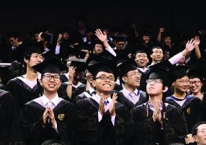上午8点半,毕业典礼在北大邱德拔体育馆内举行。今年恰逢北大建校115周年,该校特意邀请了115位全国重点中学的校长、115位毕业30年的校友来参加毕业典礼。不过对于现场的毕业生而言,最期待的还是今年新上任校长王恩哥的毕业致辞,“原校长‘凤哥’当年引用周杰伦《千里之外》的歌词为毕业生送行,不知道新校长‘恩哥’会送给我们什么?据说他是一个很严谨的人。”信息科学技术学院的一名毕业生说。