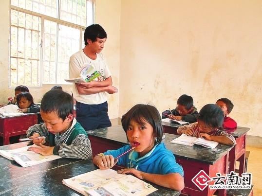 他就是李成龙,红河县车古乡利博村委会娘普小学的代课教师。正是这个只有初中文凭,连教师资质都没有的代课老师在边疆山寨履行着教师的职责。