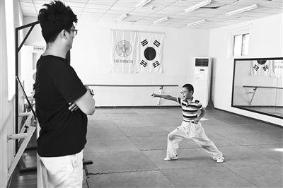 一名学生在巨人教育的暑期托管班习武。