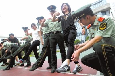 昨天,西城区月坛街道参加社会实习的5名香港大学生和街道社工代表一起走进军营,参观驻区武警官兵训练场地和宿舍,体验军人日常训练和生活。