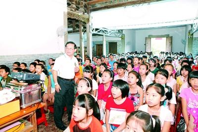 即便如此,廖乐年仍坚持免费招生。因此每年总有那么一段时间,他要从长教村消失,奔走于香港、马来西亚、新加坡以及欧美、澳洲等地,四处“化缘”。“回马来西亚,我经常打高尔夫球,看到大老板,就把球往那个方向打,搭上话就向他介绍英语班的事情,争取经费。”廖乐年幽默地说自己是“棒打大款”。广东省侨办提供的数据显示,10年来,廖乐年筹集的各种经费加起来起码有200万元。