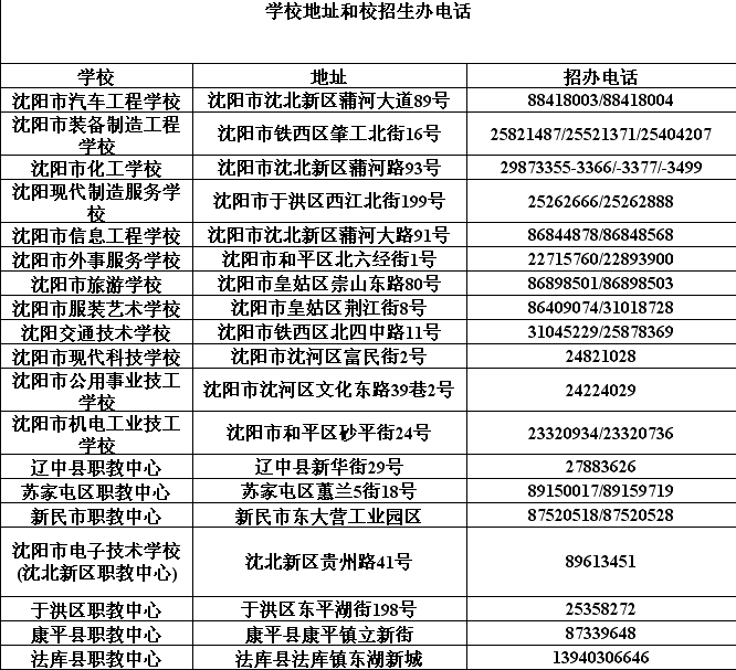 1.沈阳市汽车工程学校:汽车运用与维修50人;电气运行与控制50人;机械加工技术50人。